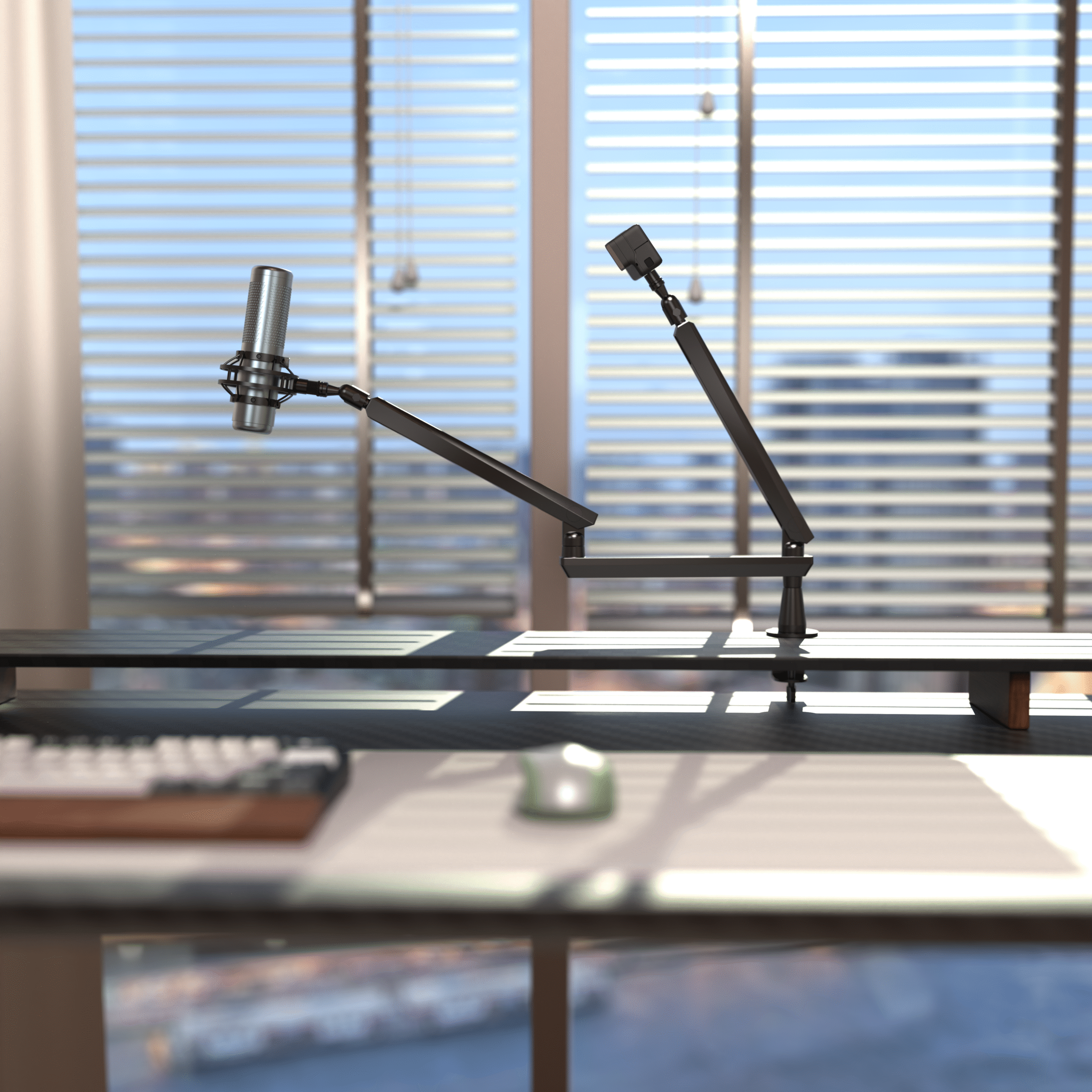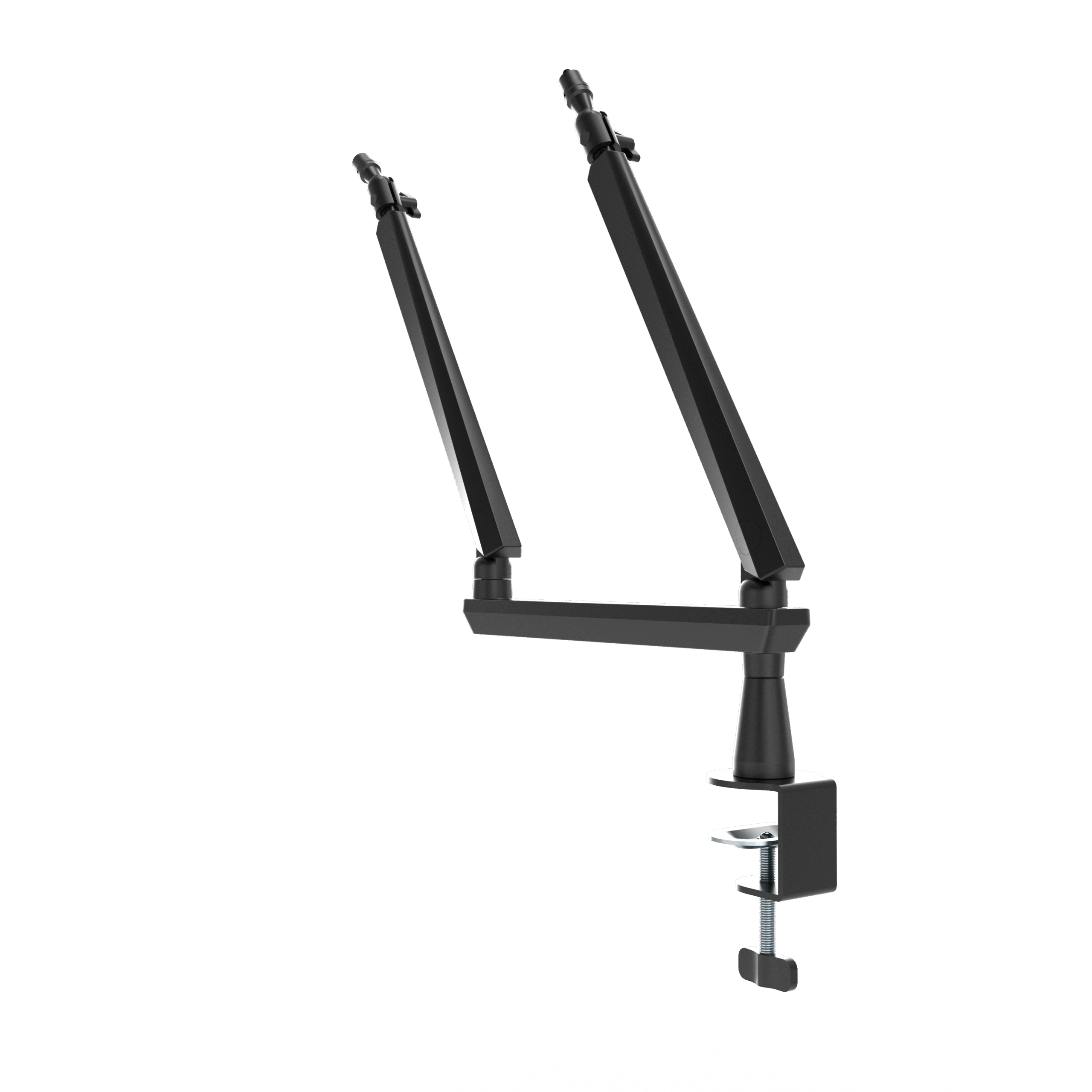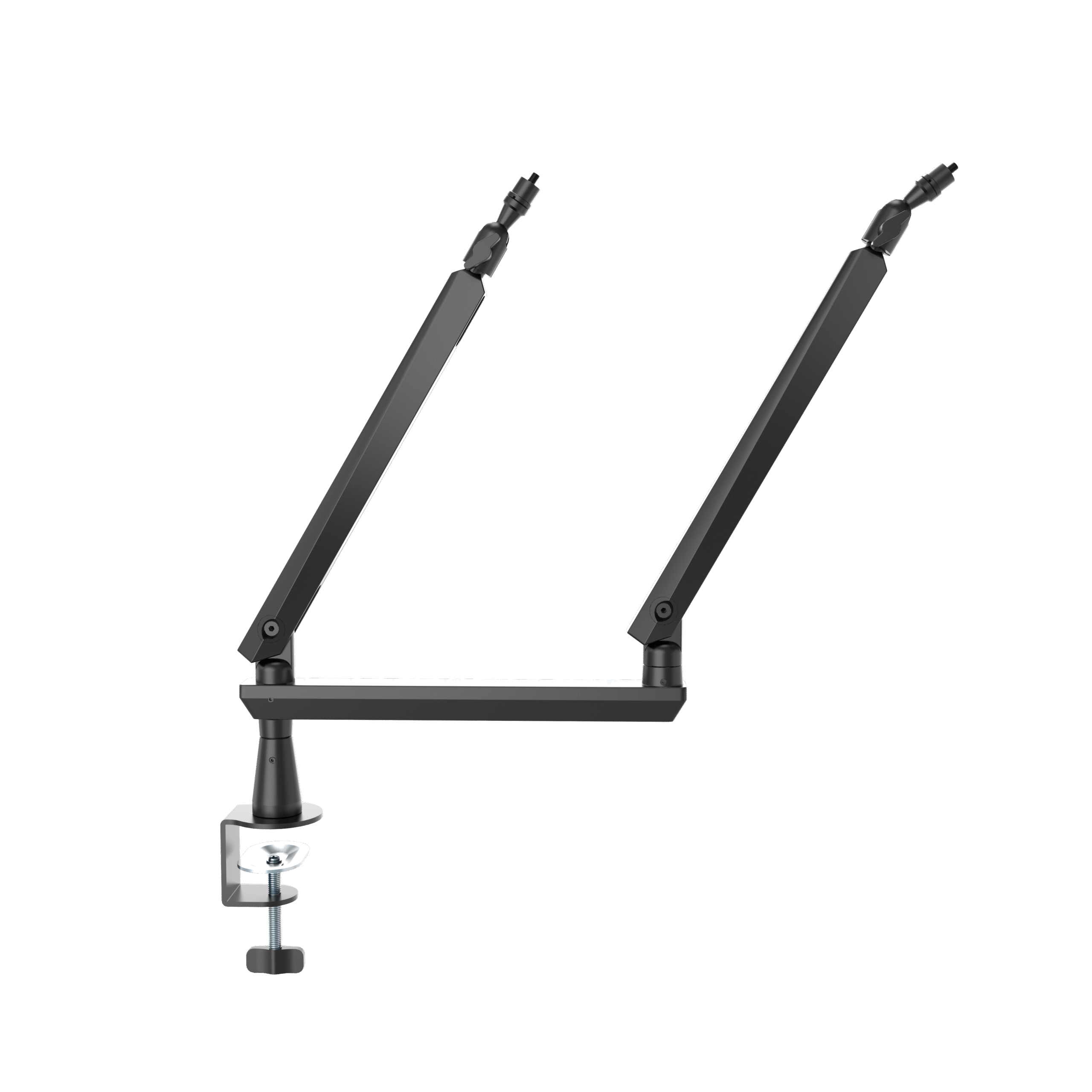 MSK01 Series features advanced engineering and high-quality aluminum die-casting, delivering smooth microphone adjustment and precise, stable positioning. Its modular design enables flexible configurations, allowing seamless switching between single and dual-arm setups to accommodate diverse needs. The boom arm can be mounted beneath monitors to save desk space, while the detachable riser column facilitates elevated microphone placement.Equipped with standard 1/4″, 3/8″, and 5/8″ threaded adapters, it supports most microphones on the market. Expanded compatibility with accessories—such as tablet clamps, GoPro mounts, and smartphone holders—unlocks versatile setups for multi-purpose use.