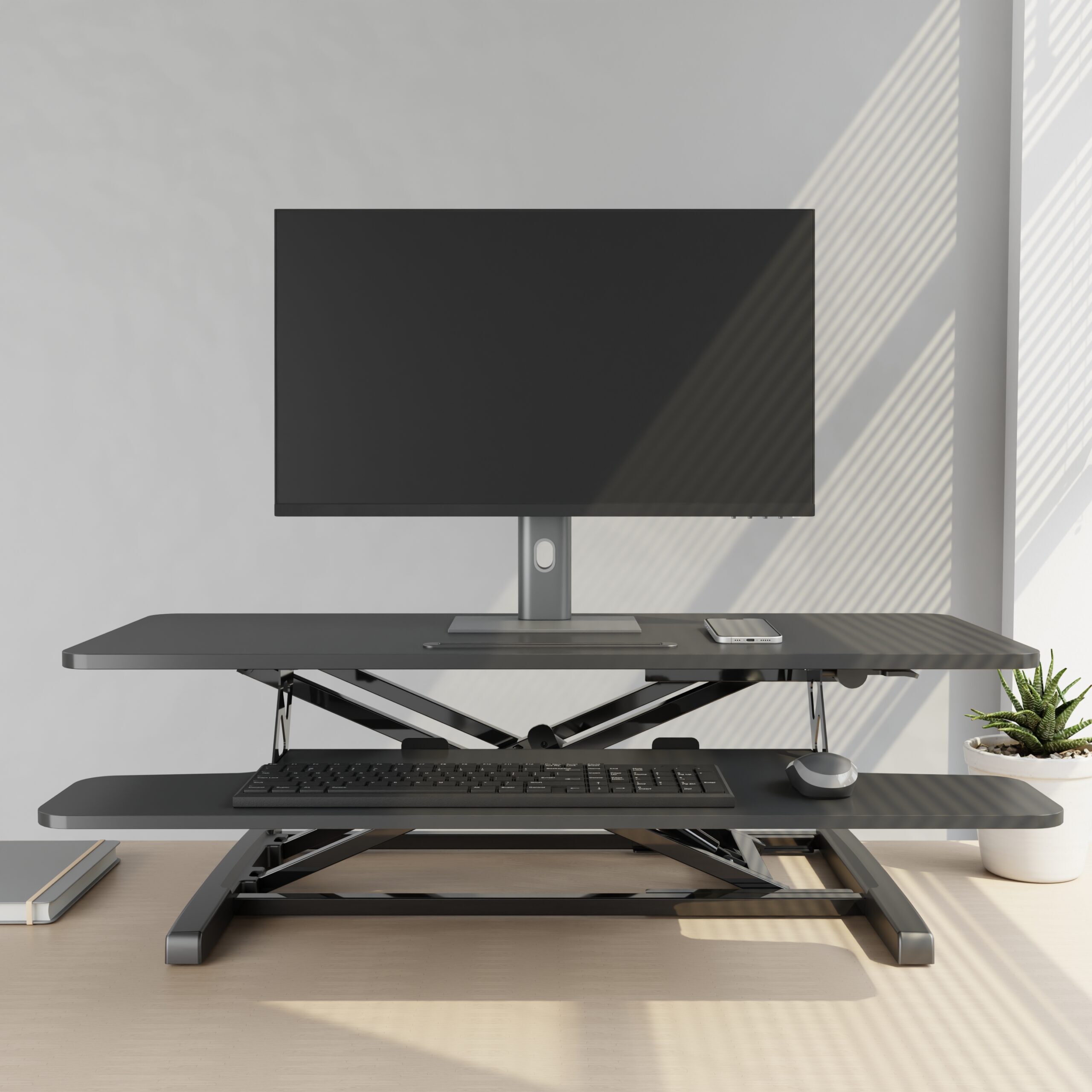 The WS01 Series Sit-Stand Desk Converter features an innovative gas spring X-Lift structure with flat crossmembers, delivering a refreshingly ergonomic sit-stand experience. Its two-tier design offers ample worksurface with generous weight capacity for all your daily essentials